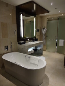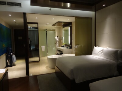 市内中心部からはすこし離れてしまうのですが、「新経済地区」の中心に位置し、75,000㎡の敷地に450室の客室があり、著名な建築家が「龍」をイメージして設計したそうです。龍はベトナムでは縁起の良いものとして象徴されています。また、龍の頭の部分にはプールがあり、「水のある場所」を作ることで、運気が回るとの意味も込められているそうです。客室はハノイ最大クラスの50㎡近く広さもあり、館内も至る所に洗練されたデザインを感じることができます。