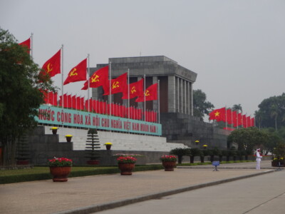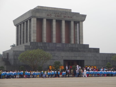 まずは「ホーチミン廟」です。ベトナム南北統一に一生を捧げ、建国の父である、故ホーチミン主席の遺体が今も安置されています。廟はベトナム全土から集められ素材で作られています。一般公開もされており、
