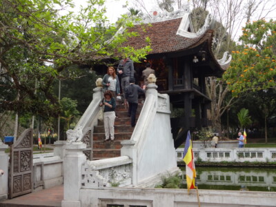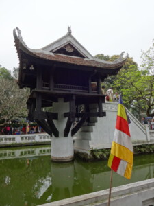 続いて、「一柱寺」です。こちらは蓮の形をしたお寺で、周囲の池には蓮の花が咲き誇ります。ハノイがタンロン(昇龍)と呼ばれていた李王朝時代に建てられたといわれており、ハノイを代表する歴史的象徴とされています。
