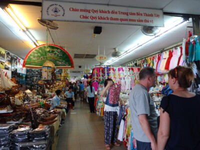 続いて、「ベンタイン市場」です。食料品、日用品、衣類生活に関わる全てが揃い、ホーチミン市民でいつもたくさんです。もちろん観光客用にも雑貨、アオザイなど何でも売っています。ここは値札が付いていないので、観光客には必ず、高い値段を言ってきます。負けずに価格交渉してみてください。もともと言われた半額以下になることも。。「自分がこの値段なら買ってもいいな」と納得する価格を目指してみてください。楽しいですよ。