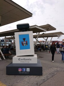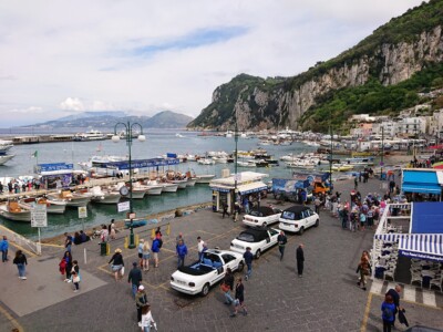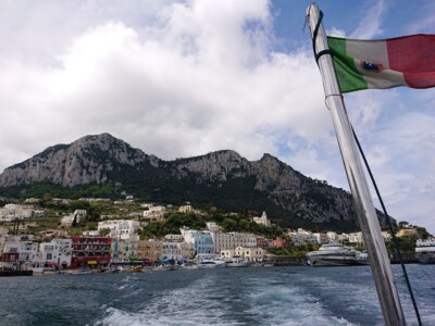 上述の通り、ローマから車で約4時間。ナポリから約30km、高速船で約45分の沖合に浮かぶ小さな島「カプリ島」。