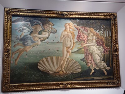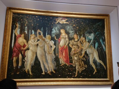 必見作品では、ボッティチェリ「ヴィーナスの誕生」「春(プリマヴェーラ)」などがあります。サイゼリアの壁紙でみるあれです(笑)ボッティチェリはルネサンス期を代表する画家で、ロレンツォ豪族に才能を買われ、メディチ家公認の画家として著名になったそうです。上記2作品はあまりにも有名ですね。