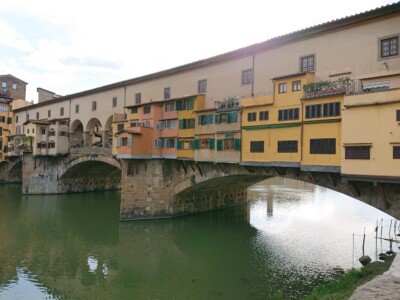 アルノ川にかかる中世の橋で、フィレンツェ最古の橋と言われています。現在の橋は1345年に再建したもので、16世紀にはメディチ家の秘密の通路「ヴァザーリの回廊」が増築されたそうです。その通路によって、ヴェッキオ宮殿からピッティ宮殿までを一度も地上に降りることなく移動するためにつくられたそう。現在では橋には宝石店が並び、多くの観光客で賑わっております。