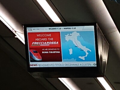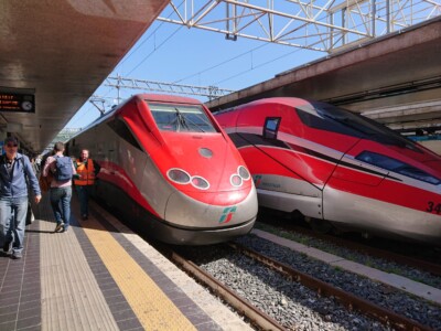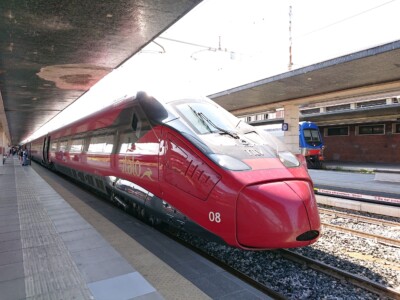 トレニタリア社が運行する高速鉄道の名称で最高速度300km/hで走行する列車です。ローマ・テルミニ駅―ミラノ中央駅を最速2時間55分で結びます。チケット購入を検討する際に何度も聞く「フレッチャロッサ」、実は1種類ではなく、正確には「フレッチャロッサ(赤い矢)」「フレッチャルジェント(銀の矢)」「フレッチャビアンカ(白い矢)」と3種類あります。中でも一番高速なのが、フレッチャロッサで日本の新幹線でいう「のぞみ」のようなイメージです。将来的には最高速度360km/hで走行する計画もあるそうです。
