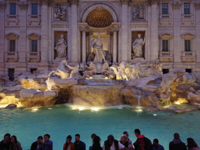 こちらの噴水では「コイントス」が有名で噴水に背を向けて、後ろ向きにコインを泉に投げると願いが叶うと言い伝えがあります。1枚の場合、「ローマに再び来ることができる」。2枚の場合、「大切な人と永遠に一緒にいることができる」。3枚の場合、「恋人や夫・妻と別れることができる」。といわれています。