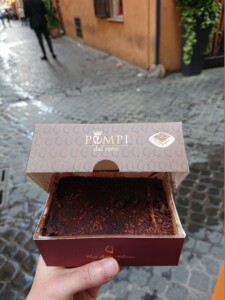 イタリアといえば、食後のドルチェ!ティラミスは欠かせません!そこでオススメがローマで一番おいしいとの呼び声もある「POMPI」です。1960年創業で、ティラミスのみを扱う専門店です。ローマ市内に4店舗あり、観光の途中で休憩としてイタリアらしく、ドルチェで疲れを癒す!完璧です(笑)