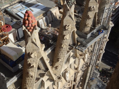 現在も建設中で、その完成は100年後とも200年後とも言われてきましたが、最近はガウディ没後200年の2026年の完成を目指しているそうです。また日本人彫刻家・外尾悦郎氏も「生誕の門」の奏楽天使の彫刻で建築に参加しています。