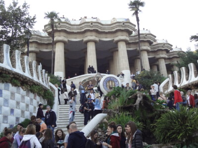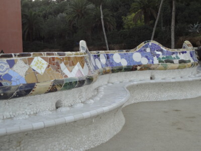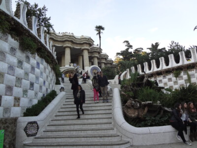 ガウディがデザインした、「大トカゲの噴水」、「門衛小屋(お土産・インフォメーション)」、「破砕タイルやガラスのベンチ」など奇妙な作品が多いのですが、周りの自然と調和して独特な雰囲気を醸し出しています。