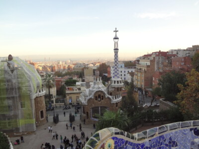その他、破砕タイルやガラスのベンチがあるギリシャ広場からの眺めるバルセロナ市内は格別です。