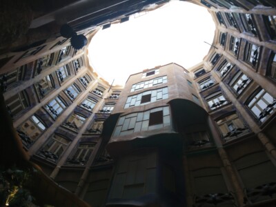 バルセロナのグラシア通りにある作品で、建物内に直線は使用されず、曲線の多用が特徴でインパクトのある印象的なガウディの代表的建築物の1つです。外観の波打つ曲線は地中海をイメージして作られており、一つ一つ異なるバルコニーは、鉄を使いながらもまるで波に漂う海藻のような、柔らかな造形を生み出しています。また当時の方々には、あまりも独創性の高い外観に、「ラ・ペドレラ(石切り場)」とニックネームを付けられていたそうです。もちろん今日では、世界遺産にも登録されるバルセロナを代表する歴史的建造物になっています。