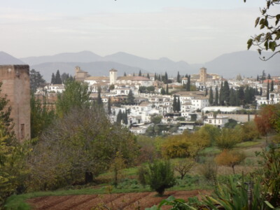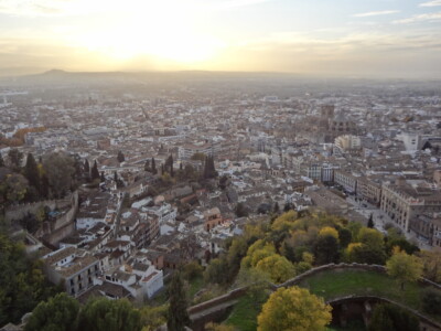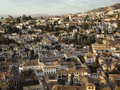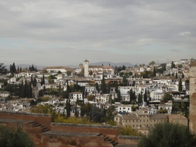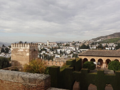 アルハンブラ宮殿の西端に位置する軍事要塞アルカサバ。塔の上からはグラナダの全景をパノラマで見渡すことができ、北側には白と茶のコントラストが美しいアルバイシン地区、西側にはグラナダ大聖堂を見渡せます。