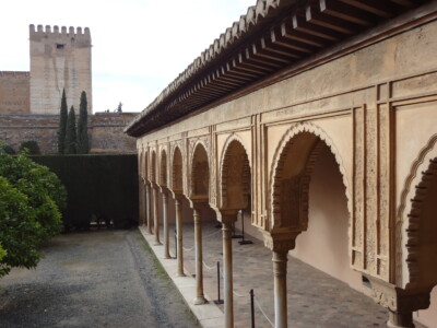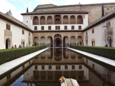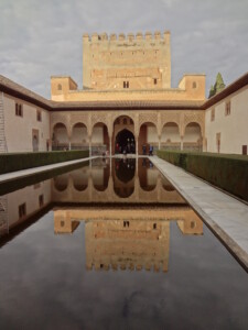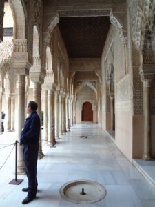 続いて、「コマレス宮」です。アルハンブラ宮殿の代表的な風景で、水面に建物が鏡写しになる風景は「アラヤネスの中庭」と呼ばれパンフレットなどによく使われています。