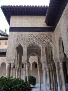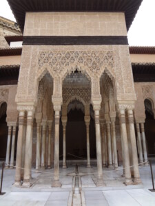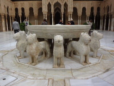 そして「ライオン宮」です。こちらもアルハンブラ宮殿の代表的な風景で「ライオンの中庭」はハイライトです。12頭のライオンの口から水が流れる円形の「ライオンの噴水」が中央にあるため、この名前がつきました。