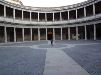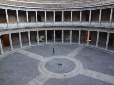 16世紀初めにカール5世(カルロス1世)が宮殿の南側に隣接して造らせた正方形のどっしりした建物。円形の中庭を囲んで2階建ての回廊がある。カール5世がイスラム建築に対抗して造らせたというが、アルハンブラ宮殿の他の建物と比べ、異質な印象を受けました。