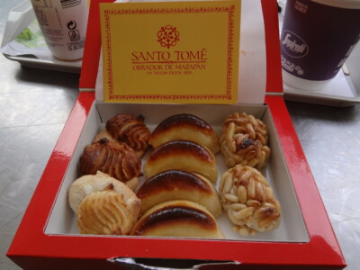 途中トレド名物「マサパン」を購入しに行きました。伝統菓子で、砂糖とアーモンドを練り合わせ饅頭のようなものです。今回は一番の有名店「サント トメ(Santo Tomé)」のマサパンを買ってみました。