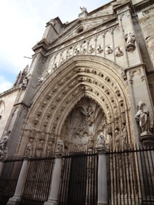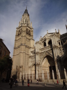 タホ川を渡り、てくてく歩くと「トレド大聖堂」到着します。フェルナンド3世によって建設を開始し、270年の歳月をかけ1493年に完成されたフランス・ゴシック様式の芸術性高い建造物です。高さ90mの鐘楼は圧巻です。