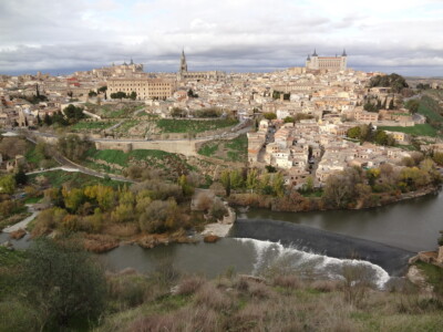 タホ川の南側の丘にある展望台「ミラドールデルバジェ(Mirador del Valle)」から望むトレド旧市街の街並み。