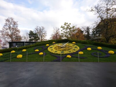 直径4mの花時計があり、ジュネーブの世界的に有名な時計産業を象徴している。