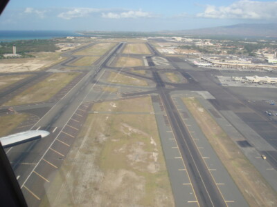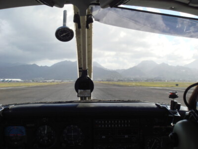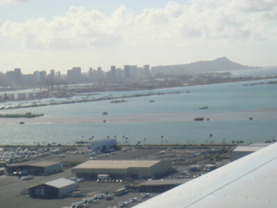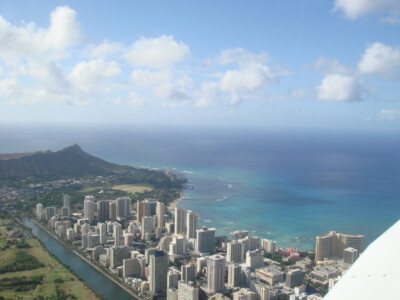 そんな遊覧飛行をしているうちに、あっという間に時間も過ぎ、またホノルル空港の管制官とコンタクトを取り、着陸許可が出たら、着陸です。頭を突っ込みすぎないように、高度を下げていき、滑走路に着地しそうな時に操縦かんを手前に少し引きます。教官が適宜指示してくれますので、まったく問題ございません。