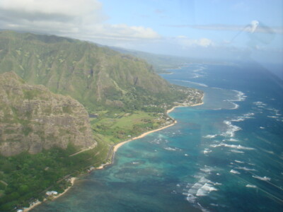 今回お世話になったのは「ワシン・エア」さんで、1997年創業とのことでした。公式HPから簡単に予約ができ、ワイキキ地区であれば、送迎もしてくださいます。空港内の事務所につくと手続きののち、体験操縦の前に映像を使って、簡単な操作方法などの説明を受けます。使用機材は単発機(4人乗り)、双発機(6人乗り)とあり、双発機のほうが機体も大きく、馬力もあるためスピードも速いです。今回は初めてだったので、単発機をお願いしました。そしてルートは、ホノルル国際空港離陸後、ワイキキ、ハナウマ湾、シーライフパーク、カイルア、ポリネシア文化センター、ワイメア、パールハーバー上空を約60分飛行する「オアフ島を半周するコース」を選びました。