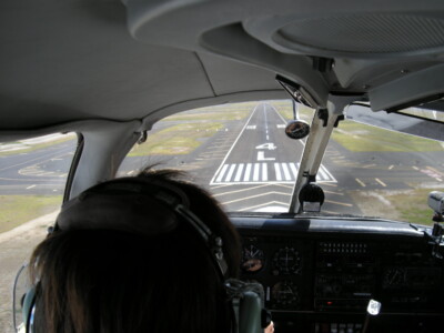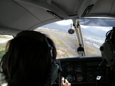 簡単なレクチャーを受けた後、機材に乗り込み、ヘッドセットを付け、エンジン始動です!座席はキャプテンシート【機長(左側)】に座らせていただき、教官がコパイロット【副操縦士(右側)】に座ります。教官の指示のもと、誘導路を移動し、滑走路へ向かいます。実際に教官が英語で地上走行や離陸許可を管制官の方とコンタクトしておりました。無事に離陸許可が出たら、滑走路に進入し、エンジン出力を上げます。所定のスピードに達したら、教官から指示をもらい操縦かんを手前にゆっくり引きます。そうすると機体が浮き上がり、離陸します。私が体験した時は、結構風にあおられました。。ただ、離陸した時は何とも言えない感動です!!