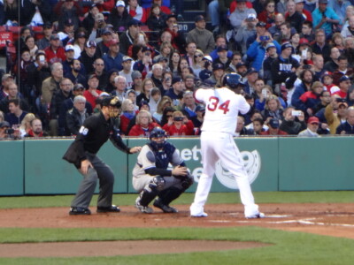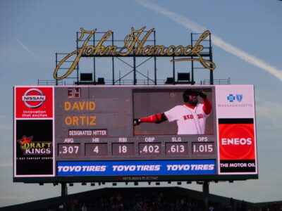 試合開始前からスタジアムの外には人があふれており、賑わっています。この時は「デービッド・オルティス(DAVID ORTIZ)」現役最後の年で、記念ユニフォームも販売されておりました。ただでさえ人気球団、ヤンキースなどの好カードになると高騰しプレミアチケットになります。球場に入ると、「これがフェンウェイか、グリーン・モンスターか」と感動します。野球があまりお好きでない方でも、グッズ類はボストンお土産にオススメです。