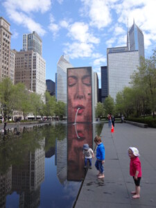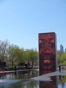 そしてシカゴといえばトップページ画像にもある「ミレニアムパーク」です。「クラウド・ゲート(銀色に耀く巨大オブジェ:その豆のような形からThe beanと呼ばれています)」に代表される、シカゴのシンボルとなっている公園です。そしてもう一つの目玉は「クラウン・ファウンテン」で、人の顔が映し出されている噴水です。これなんと!口から水が出てきます(笑)。そのほかにも公園内にはたくさんのアートがあり、散策していて楽しいし、天気が良いと気持ち良いです。