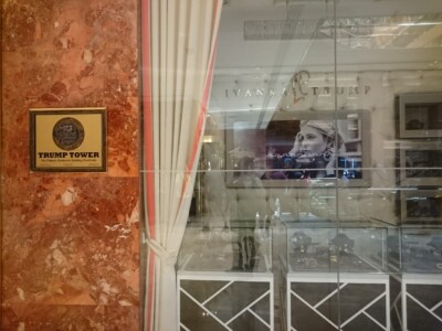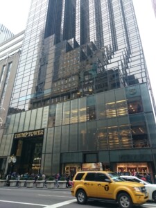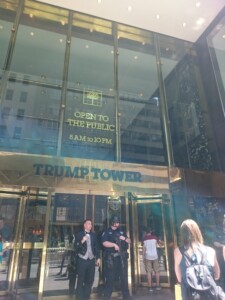 公園を出て少し南下したところに「トランプタワー」があります。厳重なセキュリティのもと、X線検査等手荷物チェックを受け中に入ります。入ってすぐ、そして地下にトランプグッズの売店があり、チョコなどの食べ物から、ネクタイ、香水など売っています。お土産にも良いかもしれませんね。