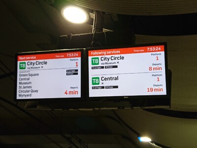 車両も比較的新しくきれいで、2階建て車両からの眺めも最高です。また現地の交通ICカード「Opal Card」で運賃も安くなりますし、その他観光にも使用できますので、空港到着時に購入をオススメいたします。