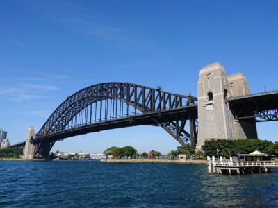 全長1,149mでシングルアーチとして世界第2位、全幅49mで世界第2位の大きさを誇るハーバーブリッジはサーキュラーキー側から眺めるのも良いのですが、対岸「ミルソンズポイント」からの眺めも「オペラハスス」「ハーバーブリッジ」両方を一度に眺めることができ、まさに絶景と言えます。対岸に渡るにはフェリーや鉄道がありますが、オススメは「ハーバーブリッジを歩いて渡る!」です。橋上には歩道も完備されており、安全に歩けますし、違った角度から眺める「シドニーハーバー」も格別です。1km強ですので、ゆっくり歩いて30分ほどの散策になります。